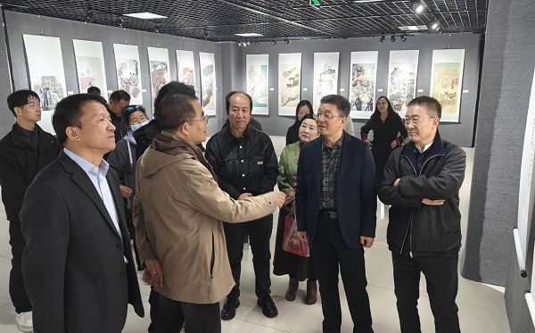 自治区文联党组书记、副主席黄明旭在观展中与宁夏美协主席团就如何进一步加强合作、提高办展质量进行交流