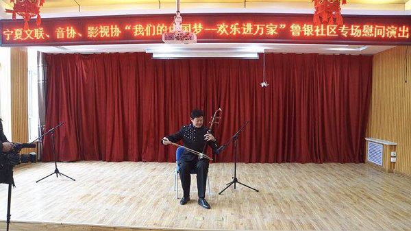 由宁夏文联音协、影视协组织的“2019年我们的中国梦——送欢乐进万家”鲁银社区专场演出的艺术家们早早就来到了鲁银城市公园社区,这是宁夏音协连续三年文艺志愿服务送欢乐进鲁银社区了。为了践行习近平总书记多次对弘扬雷锋精神、开展志愿服务的重要指示精神,宁夏音协为满足居民们的所期所盼,今年又精心组织选派了老中青艺术家们进行声乐器乐表演。艺术家们像在大剧院演出一样精心准备,给笛子贴膜、给唢呐定音调音、走台试音,一丝不苟。选唱的《过新年》《亲爱的爸爸妈妈》《为人民服务》《心在一起》等歌曲,把演出聚焦到人民美好生活需求上来,耳熟能详的音乐作品上来,把精美的艺术种在基层、服务百姓、温暖百姓。祝福、喜庆、祥和的旋律,优美的歌声,牵动着在场的居民们的心弦,大家和着节拍为艺术家们的精彩演出鼓掌、叫好,气氛热烈融洽,为鲁银社区群众的文化生活增姿添彩,营造出团结奋进、欢乐祥和的氛围。