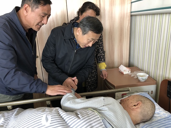 当看望常年卧床没有语言能力的肖川老师时,询问到动情处,我们都流下了眼泪,崔书记回忆起与肖老师缘分,感慨万分。随后我们在养老院大院里,正巧遇见王世兴老师,高龄90的王老师身体很硬朗,一行人前往他的公寓,崔书记询问了王老师的生活情况,看到公寓的条件很不错,我们都很欣慰。同时前往慰问了文联的老领导贾灏,详细地问了身体状况,并祝他们一家节日愉快。慰问期间,文联党组书记崔晓华、副巡视员刘伟与老同志亲切交谈,仔细询问身体状况、并祝他们节日愉快,健康长寿,深深的感谢老同志对文联的奉献。