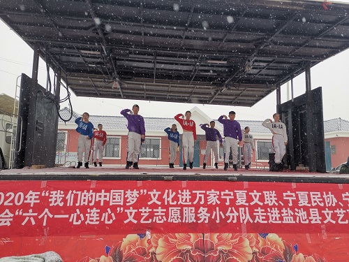为深入学习贯彻党的十九届四中全会精神,自治区党委十二届八次、九次全会精神,1月中旬,在新春佳节来临之际,自治区文联第二党支部的党员文艺工作者在文联党组的统一部署下,带领音乐家协会、电影电视家协会、民间文艺家协会的文艺志愿小分队成员分别深入到同心县杨河套子村、海原县麻春村、盐池县王乐井乡、贺兰县文化企业开展了“我们的中国梦”文化进万家文艺惠民活动。