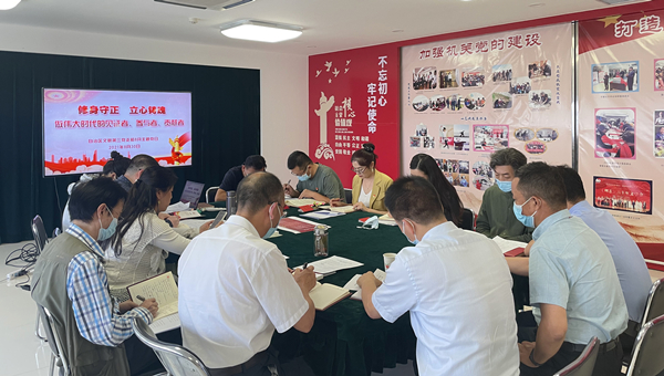 2021年8月30日下午,自治区文联第三党支部组织开展了“修身守正、立心铸魂”主题党日活动,区直机关工委第五督导组组长史国鹏一行两人、自治区文联机关党委专职副书记朱君南到会指导。