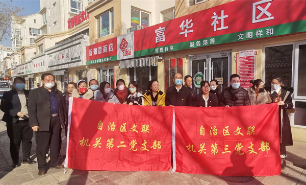 2022年2月24日,自治区文联第二、第三党支部全体党员赴银川市兴庆区新华街办事处富华社区开展主题党日活动。