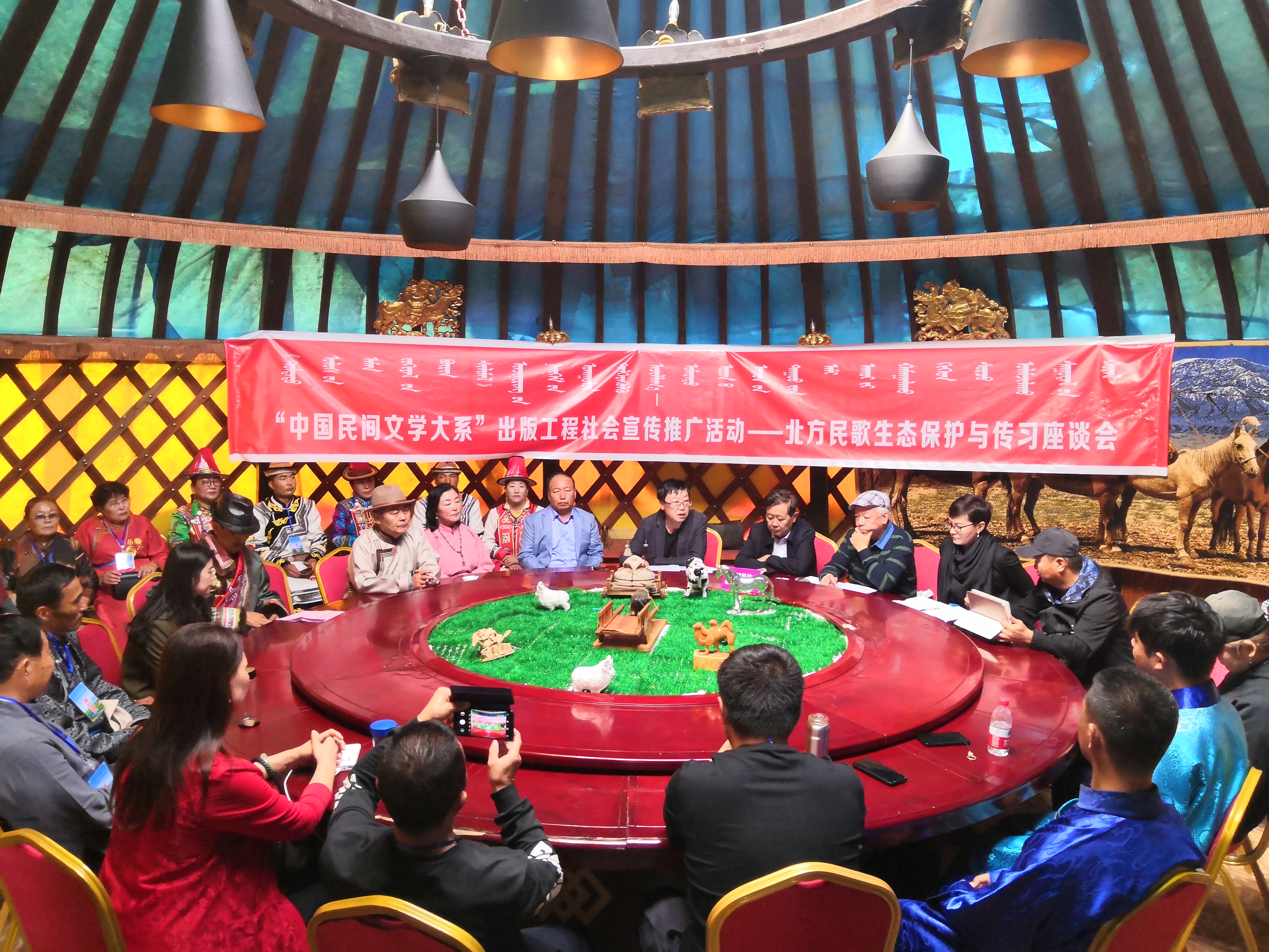 为进一步深入开展大系出版工程社会宣传推广工作,传承和弘扬中华优秀传统文化,加强不同地域和各民族之间民歌艺术的交流与借鉴,2020年8月26日至30日,中国民间文艺家协会在内蒙古自治区呼伦贝尔市陈巴尔虎旗组织开展“2020·中国北方民歌那达慕暨北方民歌生态保护与传习座谈会”。来自内蒙古、陕西、宁夏、东北、山东等11个省(市、自治区)的代表队60多名歌手,在白音哈达、鄂温克苏木等游牧基地献上了一场场精彩纷呈的民歌盛宴。一首首高亢嘹亮的西北花儿、热情洒脱的陕北民歌、舒展悠扬的蒙古长调……绽放在呼伦贝尔大草原,凸显了浓郁的地域文化特色和民族乡土风情,展示了民歌的无限魅力。