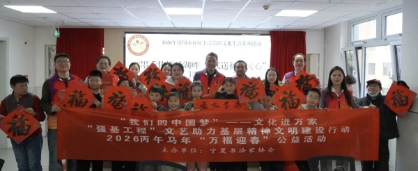 翰墨飘香添年味,温情帮扶暖人心。1月28日下午,宁夏书法家协会走进银川市五里湖畔社区,开展“万福迎春”“百村万户”书法公益活动,以笔墨传递新春祝福,将文化关怀精准送达低保、残疾等困难特殊群体手中,以实际行动扎实践行党的二十届四中全会精神与文艺惠民初心。