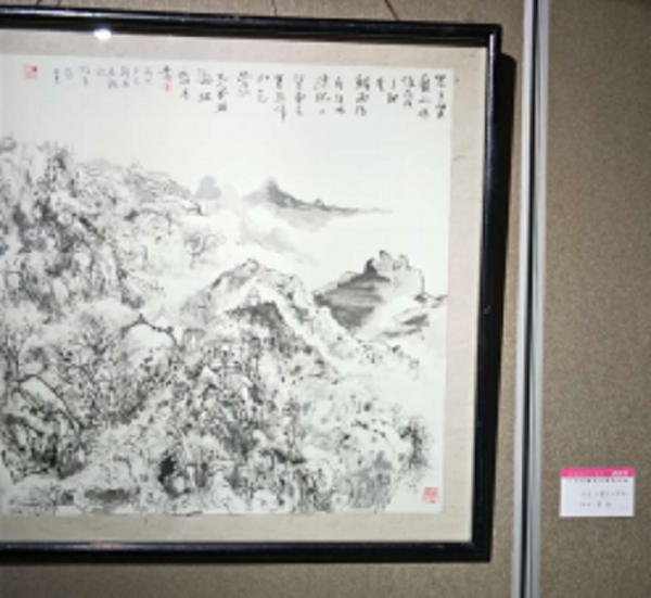 山水画家肖颖的《贺兰山》,营造出一种浪漫,空灵的境界。充溢着艺术家灵性与情志的气息,作者借鉴黄宾虹对水墨的研究,以简洁劲健的线条,逾显华滋,章法上则采用全景式构图,用笔渐趋内敛,用墨则更简淡,体现了瞬间运思行笔的墨痕,将淡远清矿融入她对天地山川精神的体悟之中,潜心探索出水墨画的轻松情调。当然,如果作者在运用现代构成因素营造画面的形式再充实一点,画中所描绘的人物更突出“点睛”的作用,似乎不会因此而略显“苍白”。王晶莹的山水《火石寨》,以飘柔流畅的线纹,笔酣墨饱传递着气象厚重的艺术风貌,具有“借笔墨以写天地”的书写性的语境,作者在行笔运墨中用强弱的变化表现着深厚的情感,从画面构成来看,画面几乎被连接成片山石所充塞,山重重绿重重云重重,山石颇具风骨苍凉之势,作者用线轻柔而洗练,增强画面的节奏感,施色用得轻松舒缓,以纵横用笔描绘出火石寨特有的地质风貌,感到她的画面弥漫着一种清新、率朗、丰富的气息。