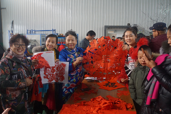 文艺服务活动在《节日欢歌》舞曲中拉开了的序幕。艺术家们刚到车间,就拉开战场,一刻都不停歇,挥毫泼墨,金剪飞舞,用手中的笔和剪刀,用心中流淌的“花儿”,用丰富多彩的艺术形式,用心中的爱,传递着新春的祝福。活动现场,艺术家们为群众书写春联、福字300余副、赠送剪纸作品150多幅。音乐、舞蹈、曲艺杂技艺术家们带来了男声独唱《不忘初心》、《咱老百姓》,音乐快板《咱说说党的十九大》等精彩的文艺节目,受到工友们的热烈欢迎,现场掌声不断、高潮迭起,让200余名企业职工在车间里欣赏到精彩的文艺盛宴,零距离欣赏艺术家们现场工作的风范。
