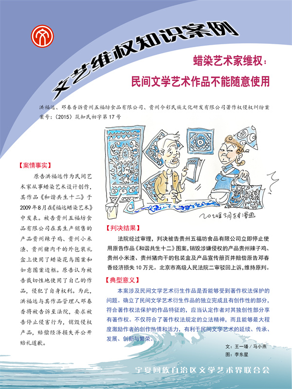 【文艺维权知识案例】蜡染艺术家维权民间文学艺术作品不能随意使用