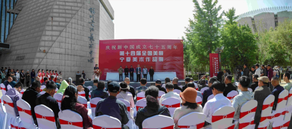 在自治区党委宣传部的大力支持下,由宁夏文联和宁夏美协精心组织策划,“庆祝新中国成立75周年 第十四届全国美展——宁夏美术作品展”历经五市培训、看稿、观摩指导,及参展作品的收集、初评、复评等一系列组织工作后,于5月11日上午在银川美术馆开幕。自治区文联党组书记、副主席黄明旭,中央广播电视总台宁夏总站党委书记郭长江,自治区党委宣传部文化艺术处副处长李义军,宁夏美协原名誉主席张少山,宁夏美协名誉主席王雪峰,宁夏美协主席何占福等领导嘉宾以及参展艺术家、美术爱好者、在校师生、媒体代表500余人参加了本次开幕式,开幕式由宁夏美协副主席兼秘书长马惟军主持。
