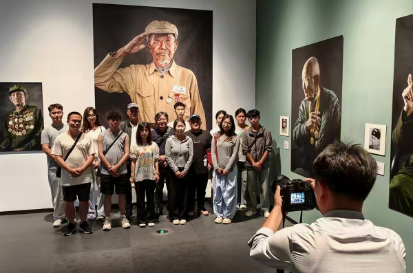 同学们在参观展览过程中,通过凝视一幅幅老战士肖像照,了解抗战历史、学习红色文化、感悟民族精神。在分享互动环节,同学们讲述自己的所感、所悟,表达了以先辈楷模为榜样,让红色基因永续传承,争做新时代青年奋斗者的决心。