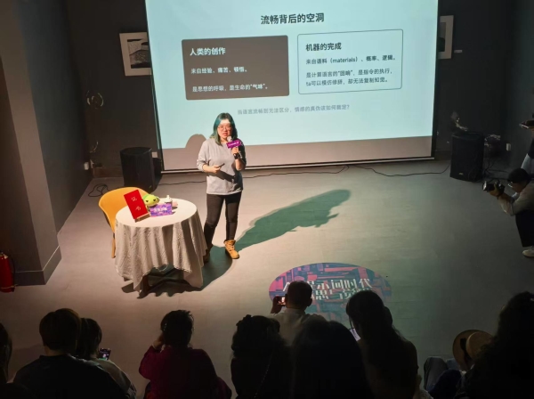 分享会上,刘钰通过诗歌创作对比,剖析了AI与人类创作的本质差异。她指出,人类写作源于经验与灵魂共鸣,AI则依托语料与逻辑计算,帮助从业者消解技术焦虑。刘钰强调,提示词是创作者驾驭AI的新工具,核心价值在于强化叙事艺术张力,推动文学视觉化与美学再造,让创作者实现从作者到导演的身份延伸。“AI是创造力的镜面,而非想象的终点,创造力与生命体验才是立身之本。”